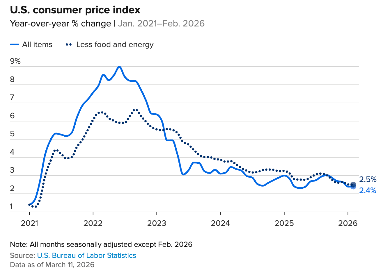 Core inflation — the version that strips out food and energy — came in at 2.5%.